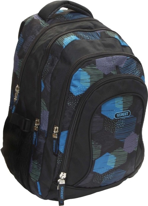 Plecak zaokrąglony Balance. Trzy komory, duża kieszeń przednia, kieszenie boczne z siatki. Zamki błyskawiczne z ozdobnymi pulerami.