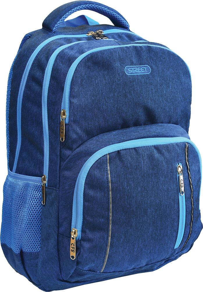 Szkolny plecak uszyty z gładkiego materiału o strukturze jeansu dostępny w pięciu atrakcyjnych kolorystykach. Jego optymalne wymiary sprawiają, że sprawdzi się równie dobrze w szkole jak i na wycieczce. Jest lekki i pojemny, wykonany z wysokiej jakości materiałów – to wszystko składa się na niepowtarzalną wygodę w użytkowaniu go na co dzień. Cechy plecaka: - sztywne, ergonomicznie ukształtowane, oddychające plecy - szerokie, grube szelki oddychające z regulacją - wzmocniony spód - pojemna komora główna zamykana na podwójny suwak - przednia komora zapinana na suwak - przednia kieszeń zapinana na suwak, idealna na śniadaniówkę - przednia kieszonka zapinana na suwak dopasowana do drobiazgów - dwie boczne kieszenie z podwójnej siatki na bidon lub akcesoria - delikatne odblaski - solidne, metalowe suwaki z logiem STREET® Wymiary: 30 x 20 x 46 cm Waga: 0,6 kg