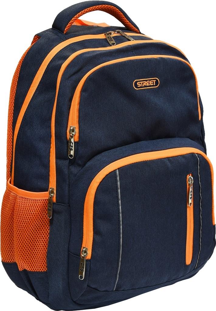 Szkolny plecak uszyty z gładkiego materiału o strukturze jeansu dostępny w pięciu atrakcyjnych kolorystykach. Jego optymalne wymiary sprawiają, że sprawdzi się równie dobrze w szkole jak i na wycieczce. Jest lekki i pojemny, wykonany z wysokiej jakości materiałów – to wszystko składa się na niepowtarzalną wygodę w użytkowaniu go na co dzień. Cechy plecaka: - sztywne, ergonomicznie ukształtowane, oddychające plecy - szerokie, grube szelki oddychające z regulacją - wzmocniony spód - pojemna komora główna zamykana na podwójny suwak - przednia komora zapinana na suwak - przednia kieszeń zapinana na suwak, idealna na śniadaniówkę - przednia kieszonka zapinana na suwak dopasowana do drobiazgów - dwie boczne kieszenie z podwójnej siatki na bidon lub akcesoria - delikatne odblaski - solidne, metalowe suwaki z logiem STREET® Wymiary: 30 x 20 x 46 cm Waga: 0,6 kg