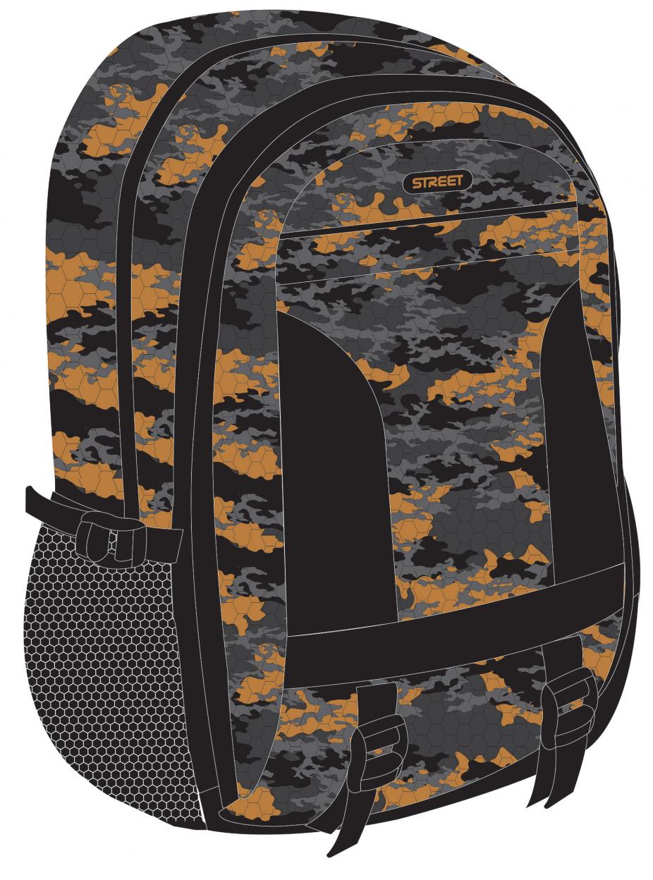 Plecak Street wykonany z wodoodpornych i łatwo czyszczących materiałów wysokiej jakości, posiada 2 komory główne, przednią kieszeń i dwie kieszonki boczne oraz wygodne, oddychające plecy i szelki. 30x20x45 cm