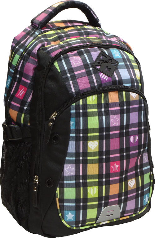 Plecak Street wykonany jest z materiałów wodoodpornych, posiada wzmocnione, nieprzemakalne zamki, oddychające plecy i miękkie szelki z możliwością regulacji oraz trzy przestronne komory, dwie kieszonki boczne i jedną przednią. Wymiary: 32x14x46 cm