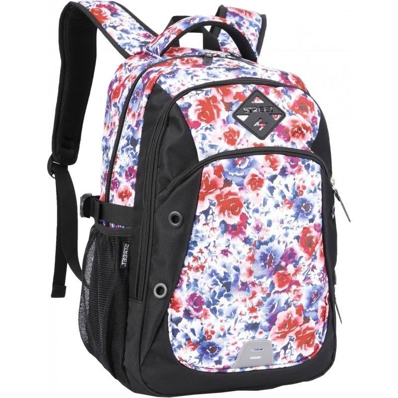 Lekki plecak dwukomorowy szkolny o wyjątkowo dziewczęcym wzorze w kwiaty, w odcieniach bieli, granatu i czerwieni. Jego solidna konstrukcja i nowoczesny design sprawiają, że będzie to doskonały wybór zarówno do szkoły jak i na wycieczkę. Cechy plecaka: - pojemna komora główna z przegrodą na laptopa, zapinana na suwak - pojemna komora przednia zapinana na suwak - przednia, głęboka kieszeń z wentylacją na podręczne rzeczy - dwie boczne kieszonki z siatki na bidon i akcesoria - podwójny, wzmacniany przeszyciem spód plecaka - sztywne plecy w całości pokryte miękkim, oddychającym materiałem, dopasowane do kręgosłupa - specjalny system STREET AIR, odprowadzający wilgoć z pleców - szerokie, wyściełane szelki oddychające z regulacją - uchwyt do zawieszenia plecaka - gruby, oddychający uchwyt do przenoszenia plecaka w ręku - odblaskowy uchwyt na karabińczyk z przodu plecaka - suwaki zakończone wygodnymi, czarnymi uchwytami z logiem STREET® - nowoczesne, gumowe logo STREET® z przodu plecaka - boczne pasy do kompresji plecaka Wymiary: 30 x 16 x 45 cm Waga: 0,48 kg