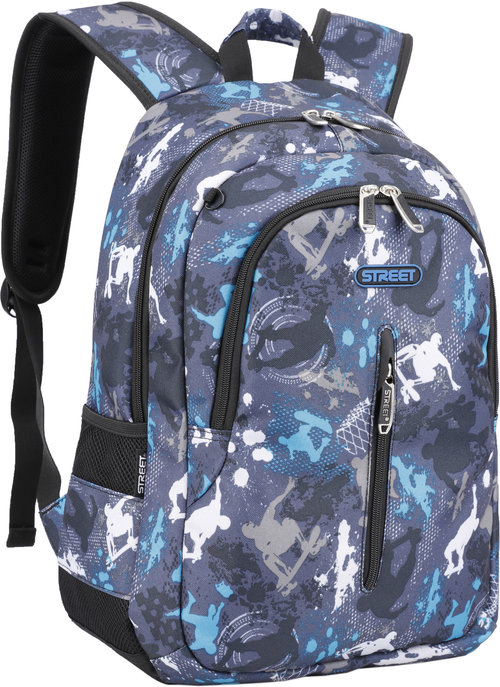 Plecaki United Street to dwukomorowa seria doskonale dopasowana do współczesnej młodzieży. Posiada ergonomiczny kształt oraz szereg designerskich dodatków. Rewelacyjnie układa się z każdą posturą, a dzięki nowoczesnym wzorom w kilku odsłonach jest atrakcyjny pod każdym względem, dla każdego młodocianego uczestnika szkolnego ruchu. Każdy szczęśliwy posiadacz może niezwłocznie po nabyciu, spersonalizować swój plecak dopinając do specjalnych uchwytów swoje indywidualne dodatki. Cechy plecaka: - pojemna komora główna, z przegrodą na laptopa, zamykana na podwójny suwak - przednia komora z kieszenią organizacyjną oraz odpinanym mocowaniem na klucze, zapinana na suwak - przednia kieszonka zapinana na suwak, pomieści wszystkie podręczne akcesoria - dwie boczne kieszonki z siatki i materiału na bidon i akcesoria z gumową aplikacją - gruby, podwójny spód plecaka - mocno usztywnione plecy z miękkim dopasowanym wyściełaniem oraz specjalnym oddychającym AIR STREET SYSTEM - szerokie na 8 cm, sztywne szelki oddychające z regulacją - zakładka na okulary na szelce z gumową aplikacją - uchwyt do zawieszenia plecaka - niewielki uchwyt do zawieszenia swojego ulubionego breloka - solidne, metalowe uchwyty z napisem STREET® - gumowa aplikacjaz logiem STREET Wymiary: 44,5 x 32 x 16,5 cm Waga: 0,65 kg