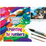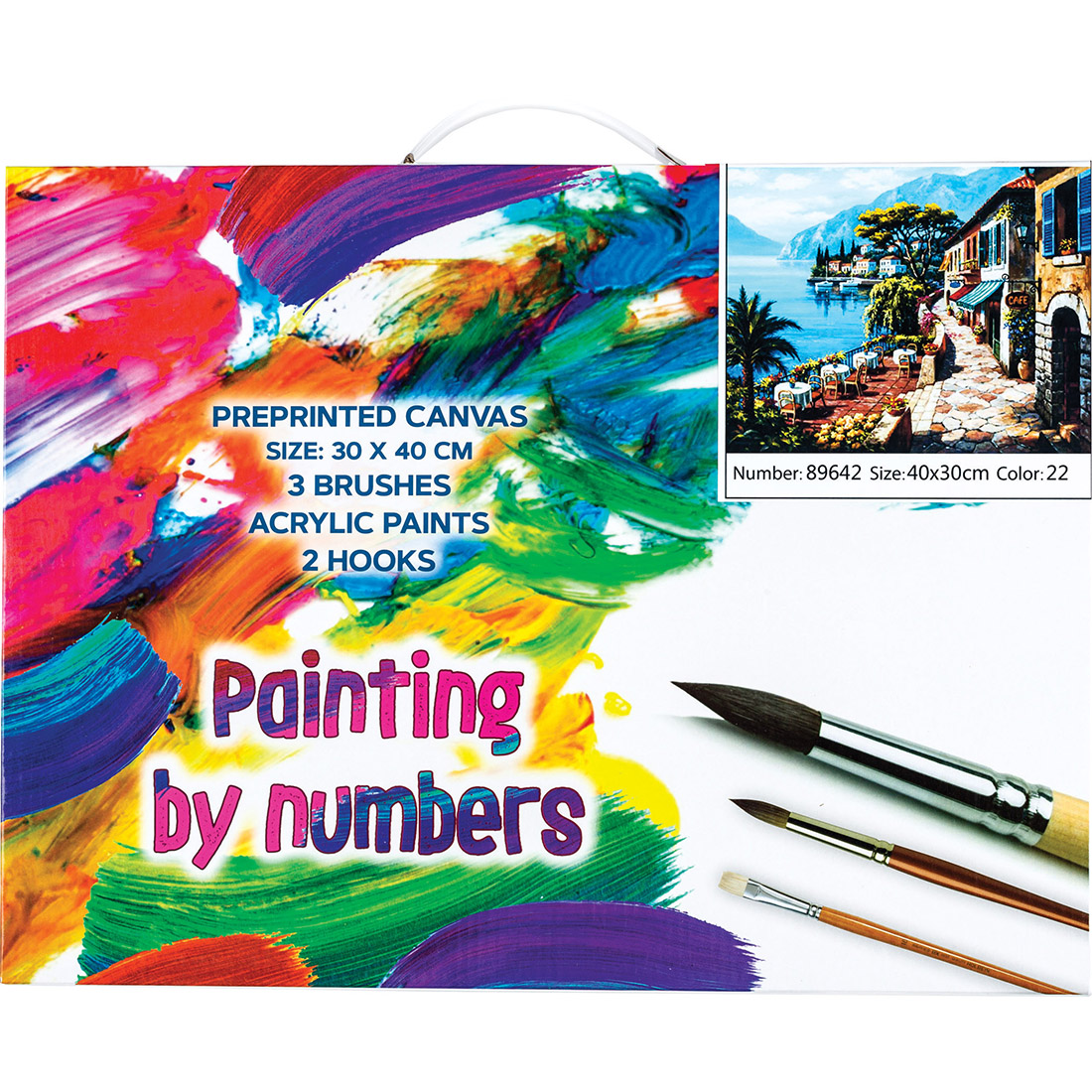 Zestaw do malowania po numerach zawiera: wysokiej jakości płótno rozciągnięte na drewnianej ramie; rozmiar: 30x40 mm; farby przyjazne dla środowiska; trzy pędzelki wykonane z wysokiej jakości materiałów