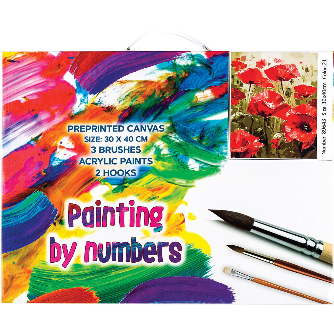 Zestaw do malowania po numerach zawiera: wysokiej jakości płótno rozciągnięte na drewnianej ramie; rozmiar: 30x40 mm; farby przyjazne dla środowiska; trzy pędzelki wykonane z wysokiej jakości materiałów