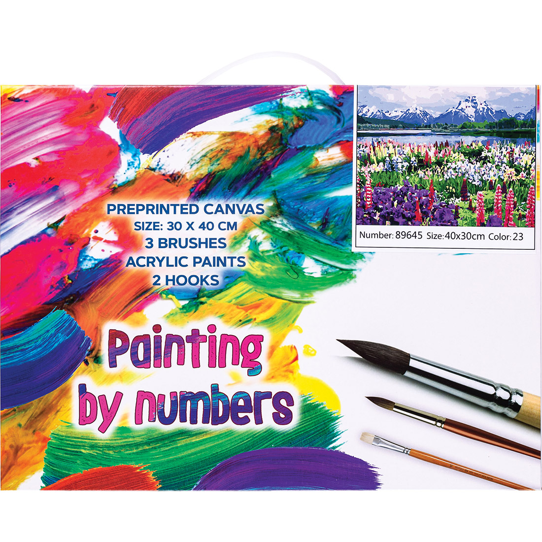 Zestaw do malowania po numerach zawiera: wysokiej jakości płótno rozciągnięte na drewnianej ramie; rozmiar: 30x40 mm; farby przyjazne dla środowiska; trzy pędzelki wykonane z wysokiej jakości materiałów