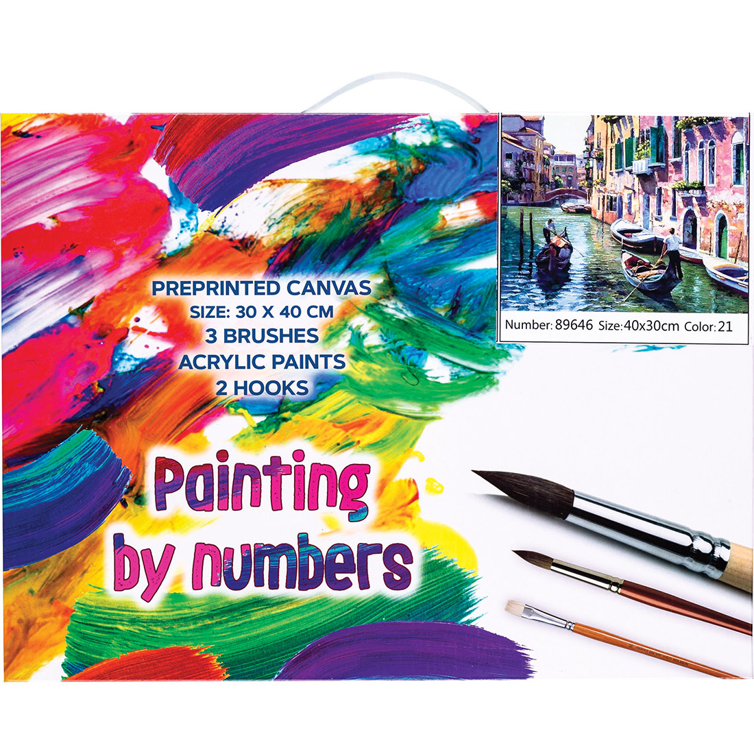 Zestaw do malowania po numerach zawiera: wysokiej jakości płótno rozciągnięte na drewnianej ramie; rozmiar: 30x40 mm; farby przyjazne dla środowiska; trzy pędzelki wykonane z wysokiej jakości materiałów