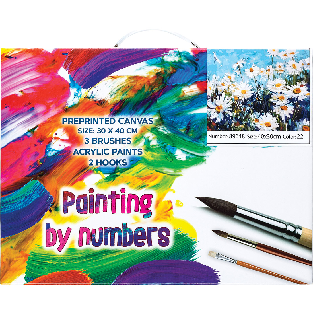 Zestaw do malowania po numerach zawiera: wysokiej jakości płótno rozciągnięte na drewnianej ramie; rozmiar: 30x40 mm; farby przyjazne dla środowiska; trzy pędzelki wykonane z wysokiej jakości materiałów