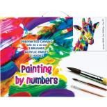 Zestaw do malowania po numerach zawiera: wysokiej jakości płótno rozciągnięte na drewnianej ramie; rozmiar: 30x40 mm; farby przyjazne dla środowiska; trzy pędzelki wykonane z wysokiej jakości materiałów