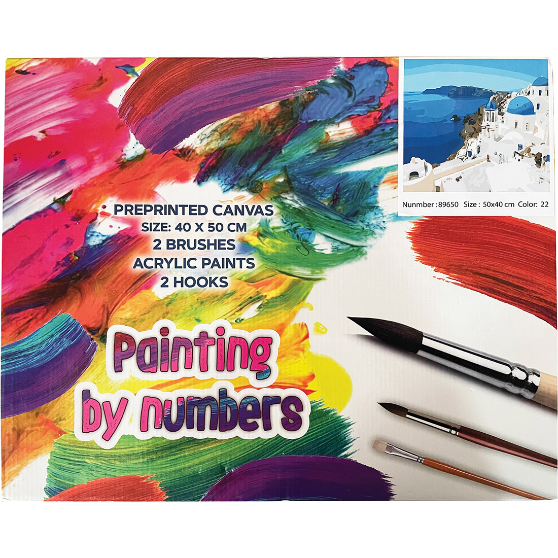 Zestaw do malowania po numerach zawiera: wysokiej jakości płótno rozciągnięte na drewnianej ramie; rozmiar: 40x50 mm; farby przyjazne dla środowiska; trzy pędzelki wykonane z wysokiej jakości materiałów