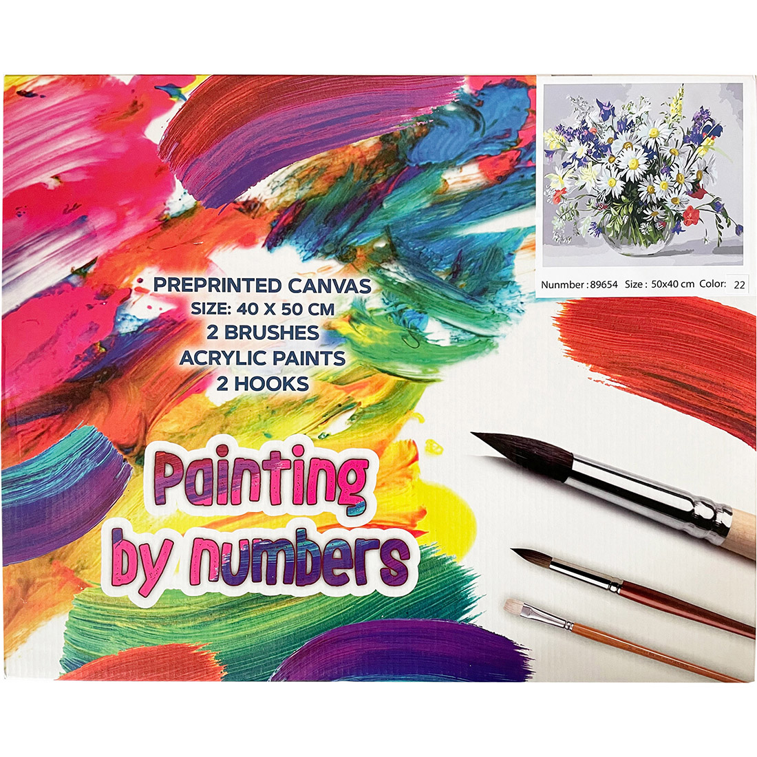 Zestaw do malowania po numerach zawiera: wysokiej jakości płótno rozciągnięte na drewnianej ramie; rozmiar: 40x50 mm; farby przyjazne dla środowiska; trzy pędzelki wykonane z wysokiej jakości materiałów
