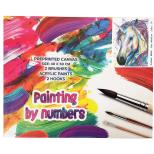 Zestaw do malowania po numerach zawiera: wysokiej jakości płótno rozciągnięte na drewnianej ramie; rozmiar: 40x50 mm; farby przyjazne dla środowiska; trzy pędzelki wykonane z wysokiej jakości materiałów