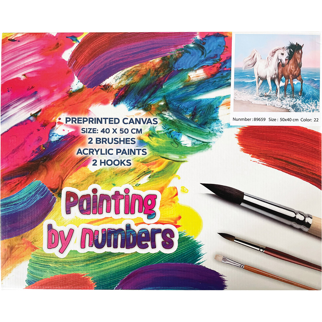 Zestaw do malowania po numerach zawiera: wysokiej jakości płótno rozciągnięte na drewnianej ramie; rozmiar: 40x50 mm; farby przyjazne dla środowiska; trzy pędzelki wykonane z wysokiej jakości materiałów.