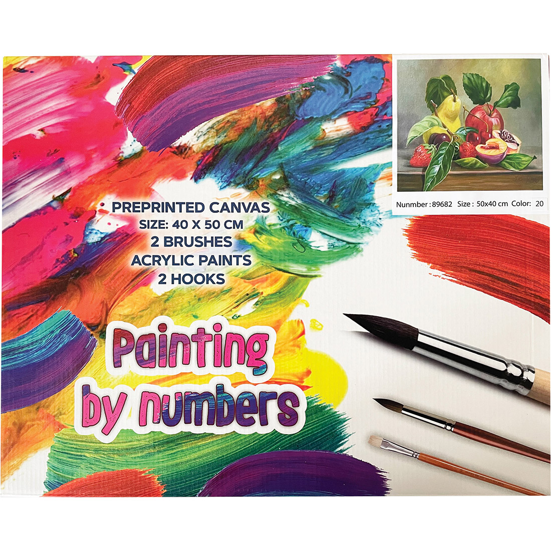 Zestaw do malowania po numerach zawiera: wysokiej jakości płótno rozciągnięte na drewnianej ramie; rozmiar: 40x50 mm; farby przyjazne dla środowiska; trzy pędzelki wykonane z wysokiej jakości materiałów.
