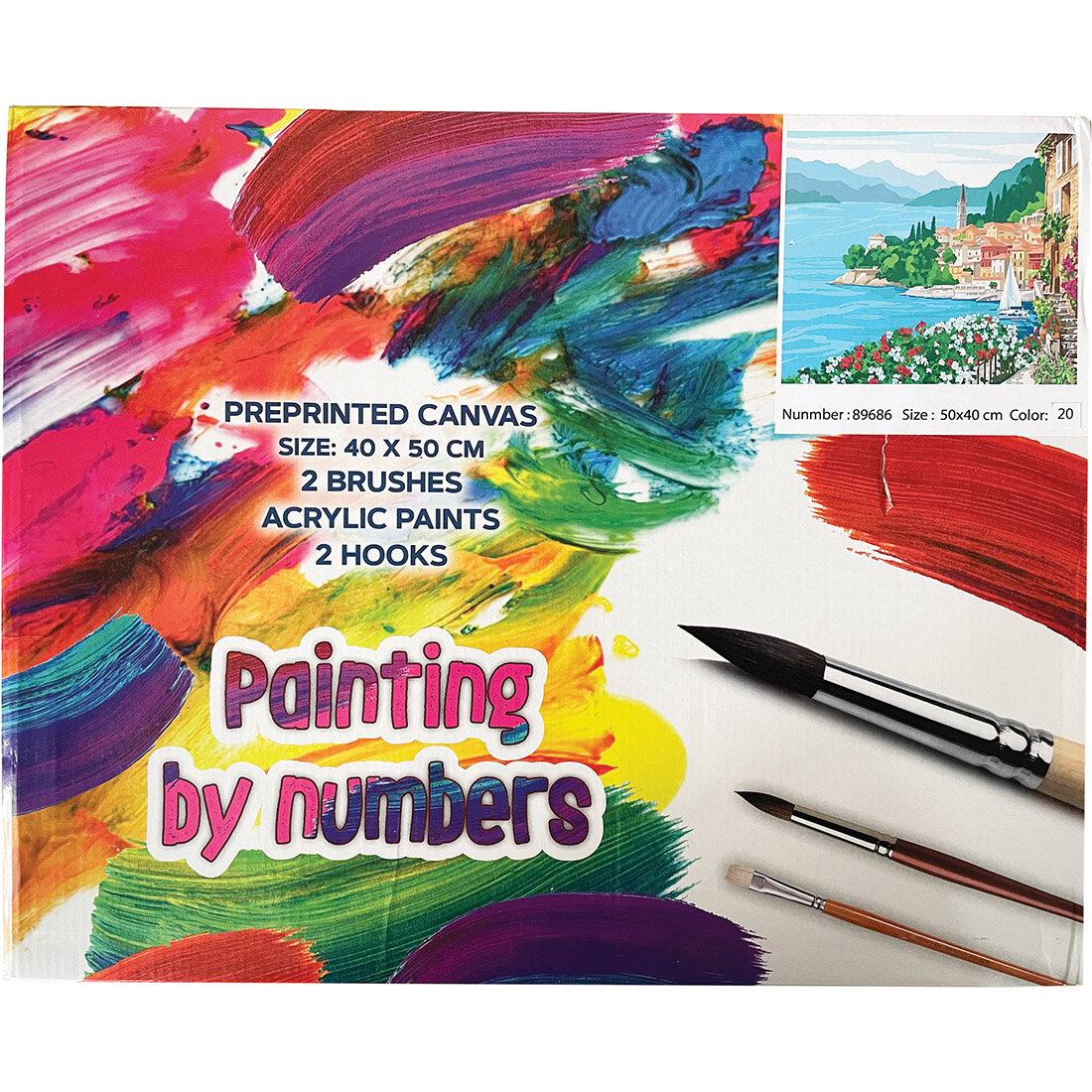 Zestaw do malowania po numerach zawiera: wysokiej jakości płótno rozciągnięte na drewnianej ramie; rozmiar: 40x50 mm; farby przyjazne dla środowiska; trzy pędzelki wykonane z wysokiej jakości materiałów.