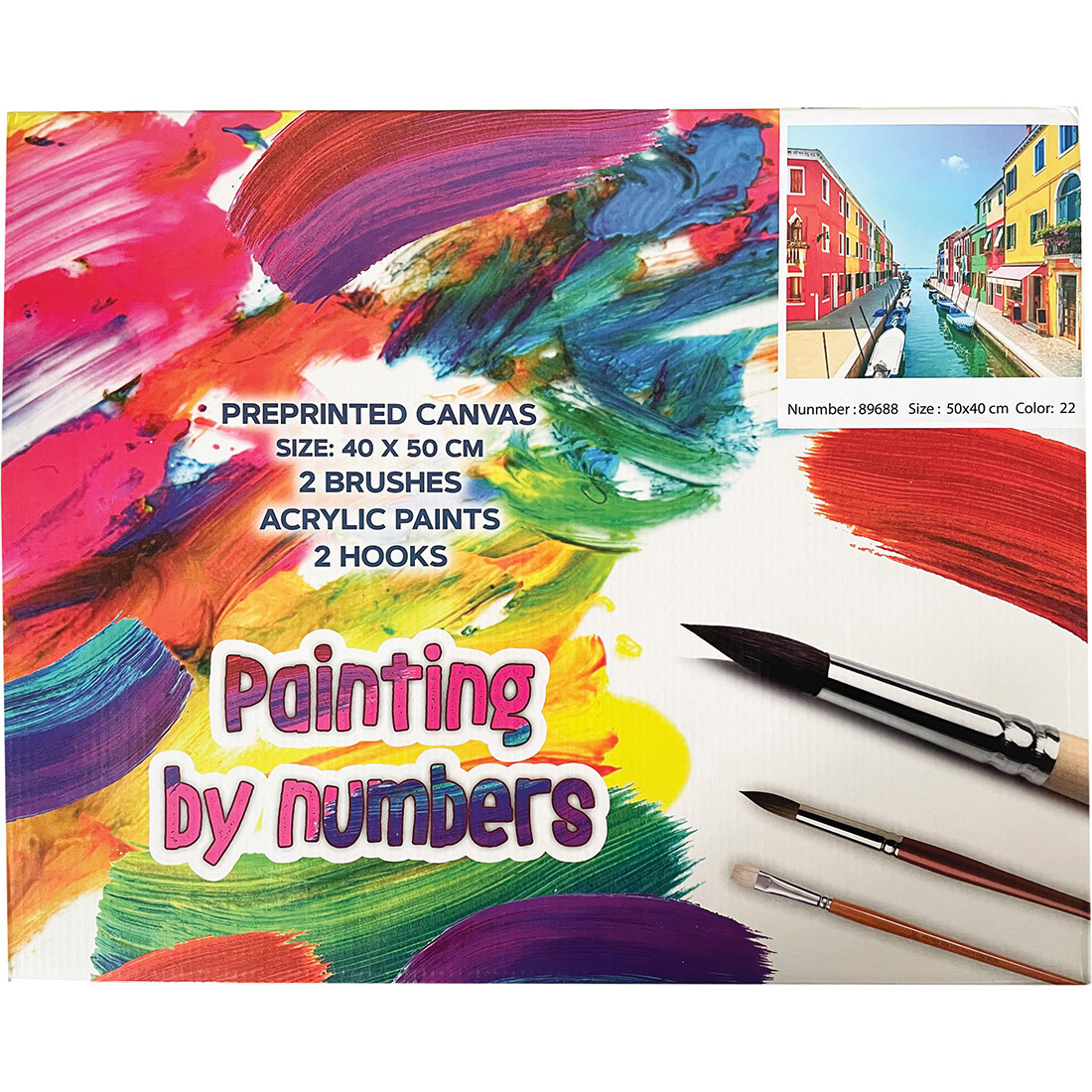 Zestaw do malowania po numerach zawiera: wysokiej jakości płótno rozciągnięte na drewnianej ramie; rozmiar: 40x50 mm; farby przyjazne dla środowiska; trzy pędzelki wykonane z wysokiej jakości materiałów.