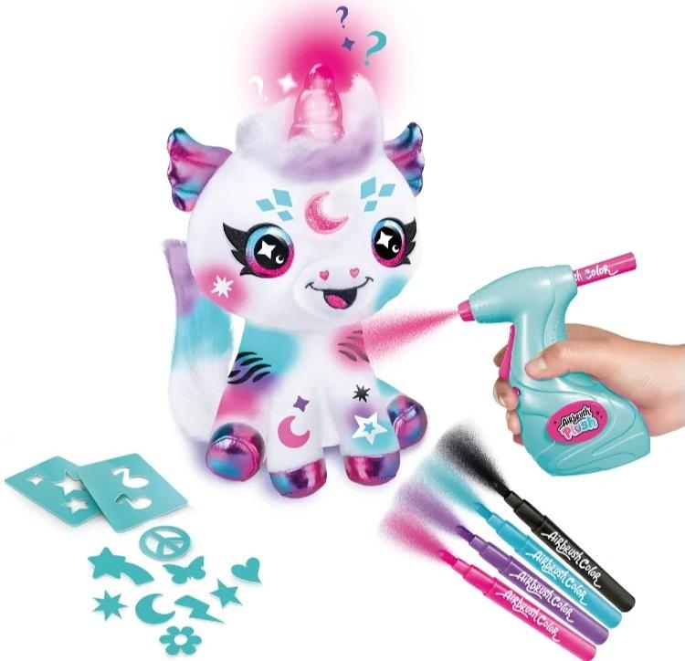 Gwiezdny Jednorożec to więcej niż plusz. Można go dekorować za pomocą dołączonego do zestawu aerografu lub markerów. Można zadać mu pytanie, na które odpowie, używając odpowiedniego koloru. Po zabawie Gwiezdnego Jednorożca można wyprać i stworzyć nowe stylizacje od początku.