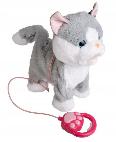 Uroczy pluszowy kot na smyczy to zabawka, która przenosi zabawę w świat małych marzeń o posiadaniu własnego pupila.