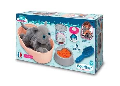 Zestaw z 9 akcesoriami w tym: pluszowy kot z koszykiem do spania, miską, szczotką do czesania oraz pojemniczkami. Wyprodukowane we Francji.