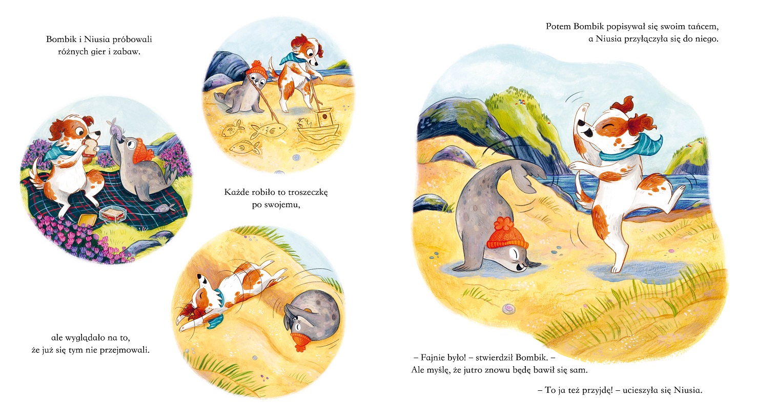Czy Bombik, który lubi być sam, i towarzyska, pogodna Niusia nauczą się bawić razem? A może nawet zostaną przyjaciółmi?
