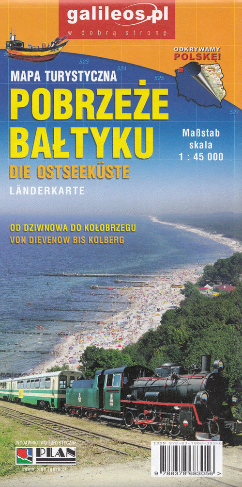 Nowe wydanie mapy turystycznej Pobrzeże Bałtyku wraz z planami najważniejszych miejscowości nadmorskich. Mapa zawiera aktualne szlaki turystyczne piesze i rowerowe. Większość atrakcji turystycznych została opisana w języku polskim i niemieckim. Dodatkowo na mapie znajdziemy plany: Niechorze, Pogorzelica, Mrzeżyno, Dźwirzyno, Pobierowo, Rewal, Łukęcin, Pustkowo, Trzęsacz w skali 1:9 000