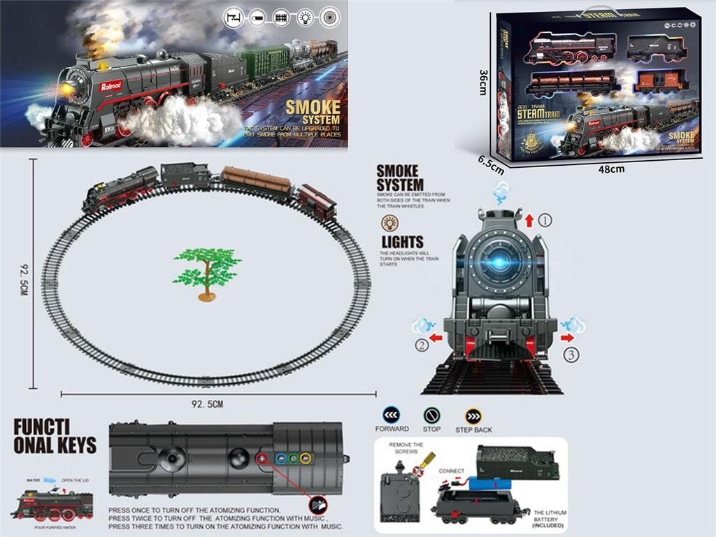 Zestaw z pociągiem 48 el. B/O, dym, światło i dźwięk, tor: 92,5x92,5cm,