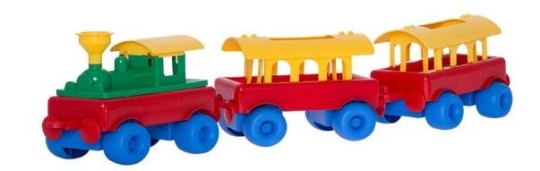 Pociąg składa się z lokomotywy i dwóch wagonów. Kompatybilny z klockami K3.
