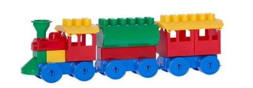 Pociąg składa się z lokomotywy i dwóch wagonów. Kompatybilny z klockami K2.