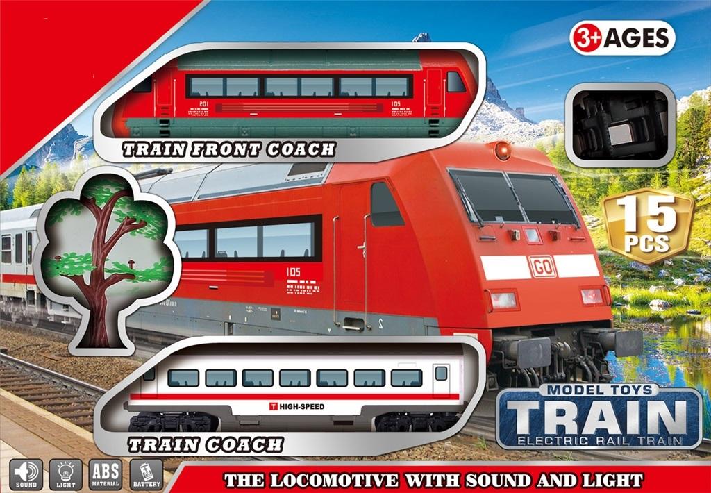 POCIĄG ELEKTRYCZNY ZE ŚWIATŁEM, DŹWIĘKIEM I TORAMI.