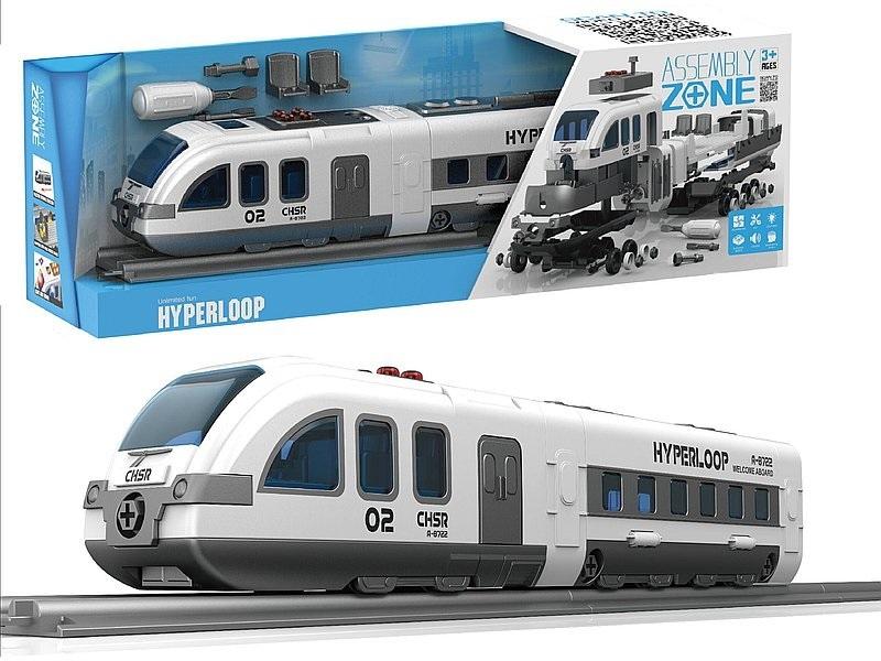 pociąg metra 1:16 do skręcania, światło, dźwięk; 50x12,5x16cm, W/B