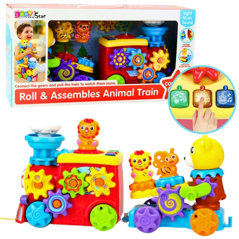 MUZYCZNY POCIĄG POJAZD MIŚ KOŁA ZĘBATE INTERAKTYWNA ZABAWKA DLA DZIECI Kolorowy i interaktywny muzyczny pociąg ze zwierzątkami to idealna zabawka dla dzieci, która w wyjątkowy sposób łączy funkcję pojazdu z bogactwem elementów edukacyjnych i sensorycznych. Wesoły pociąg z przyczepką i misiem został zaprojektowany tak, aby nie tylko bawić, ale również rozwijać motorykę małą, spostrzegawczość i wyobraźnię dziecka już od pierwszych chwil zabawy. Zabawka została wyposażona w obracające się koła zębate, które angażują rączki dziecka i pomagają w rozwijaniu precyzyjnych ruchów. Dodatkowo obecne są efekty świetlne i dźwiękowe, które pobudzają zmysły i wprowadzają malucha w świat pierwszych bodźców audiowizualnych. W centralnej części pociągu znajduje się unosząca się i opadająca chmurka, a z przodu przyczepki - poruszająca się pszczółka, która aktywuje się po zakręceniu specjalną korbką przy misiu. Takie mechaniczne rozwiązania uczą dziecko zależności przyczynowo-skutkowych i zachęcają do samodzielnego odkrywania. Pociąg i przyczepka mogą być z łatwością rozłączane, co daje więcej możliwości zabawy - każdy element może funkcjonować niezależnie i być wykorzystany w inny sposób, według wyobraźni dziecka. Sznureczek do ciągnięcia zamontowany z przodu lokomotywy pozwala zabrać zabawkę ze sobą wszędzie: na dywan, po panelach w pokoju, a nawet na spacer. Całość została wykonana z bezpiecznych, nietoksycznych materiałów, które są przyjazne dla dzieci i odporne na intensywne użytkowanie. SPECYFIKACJA: Rodzaj: interaktywny pociąg muzyczny Zasilanie: 3 x 1,5V AA (brak w zestawie) Wymiary pociągu: 41 x 12 x 23 cm Wymiary opakowania: 50 x 25,5 x 14 cm Funkcje: światło, dźwięk, ruchome elementy (koła zębate, pszczółka, chmurka) ZAWARTOŚĆ ZESTAWU: Lokomotywa z przyciskami Przyczepka z misiem i korbką Koła zębate do kręcenia Sznureczek do ciągnięcia Kolorowe detale i efekty świetlno-dźwiękowe