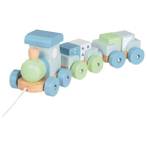 Płynnie poruszające się koła, przyjazne dla dzieci sprzęgi kulkowe i wesoło ilustrowane klocki sprawiają, że ten pociąg jest idealną zabawką.