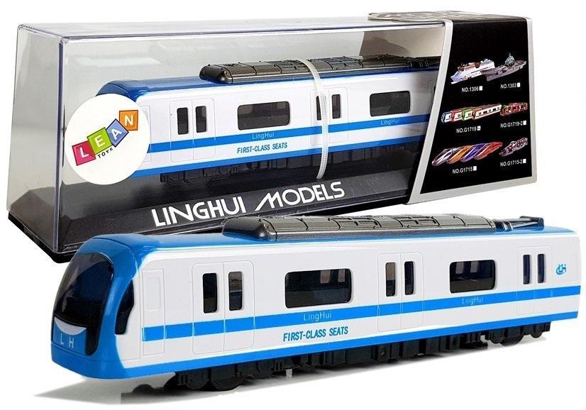 Pociąg Kolejka z Naciągiem Niebieski Dźwięk i Światła Każdego małego odkrywce interesują lokomotywy i samochodzik. Przedstawiamy idealnie odwzorowany pociąg pierwszej klasy. Dziecko, jak tylko podpowie mu wyobraźnia, może się nią bawić lub stworzyć swoją nową kolekcję. Opakowanie ma przezroczystą, plastikową witrynkę, dlatego postawiony na półce zrobi wrażenie. Posiada efekty świetlne i dźwiękowe. Pociąg wydaje odgłosy realistycznej jazdy co pozwoli maluchowi wyobrazić sobie, jakby to on był maszynistą tego miniaturowego pociągu, przemierzając długie trasy ze swoimi pasażerami. Pociąg jest utrzymany w kolorystyce niebiesko- białej. Posiada napęd frykcyjny, wystarczy nacisnąć, pociągnąć do tyłu, puścić i obserwować jak mknie w przód. Wymiary pociągu 23 cm x 4 cm x 6 cm Wymiary opakowania: 30 cm x 8 cm x 10 cm Pociąg przeznaczony jest dla dzieci powyżej 3. roku życia. Zabawka posiada certyfikat CE i jest zgodna z normą EN 71. Zasilana dwoma bateriami 1,5V AA, brak w zestawie.