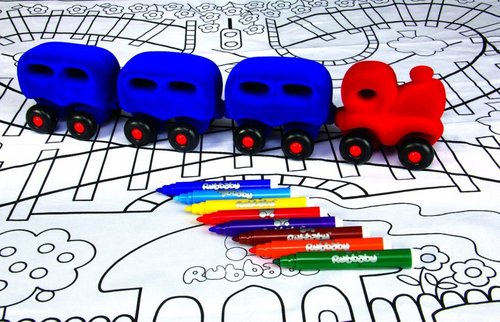 Zestaw pociągu razem z magnetycznymi kolejkami. Super zabawa w wyznaczonym przez matę miejscu. Zabawka pomaga w usprawnianiu motoryki malucha. Rubbabu stawia na rozwój sensoryczny poprzez zabawę. Zabawka przeznaczona dla najmłodszych dzieci, bezpieczna już dla niemowlaków. Rubbabu to ręcznie wykonywane zabawki, powstałe z naturalnego kauczuku, w 100% antybakteryjne, odporne na roztocza kurzu domowego, pleśnioodporne. Zabawki te także nie wywołują alergii.