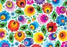 Biała pocztówka folk - wzór łowicki.