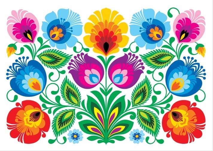 Łowicka pocztówka folk - biała kodra z kwiatami.