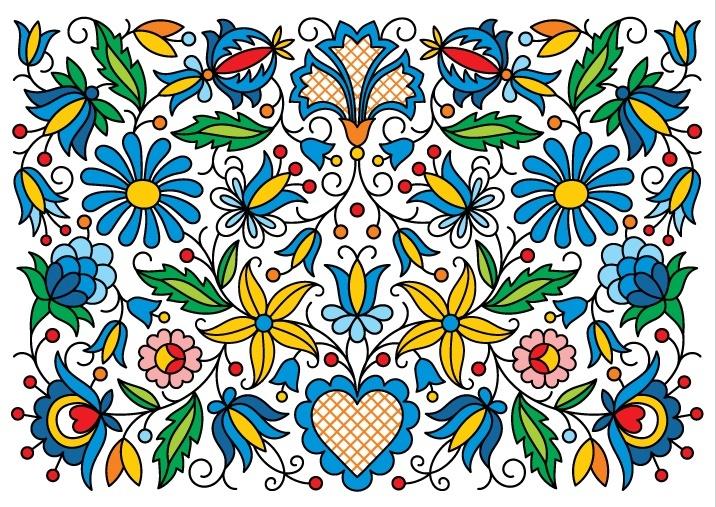 Biała pocztówka folk - kompozycja haftów kaszubskich.