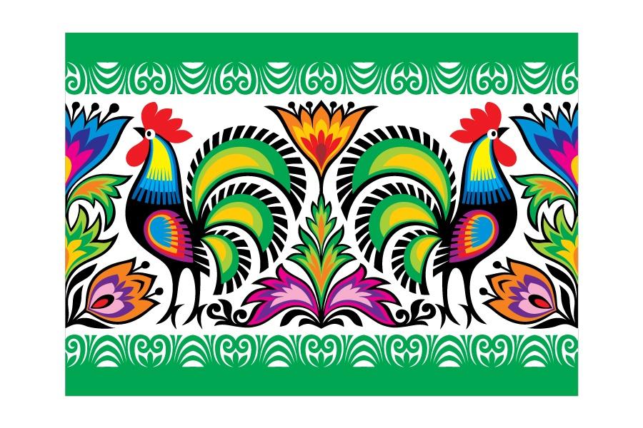 Pocztówka - Nr.8 Koguty zielone FOLKSTAR