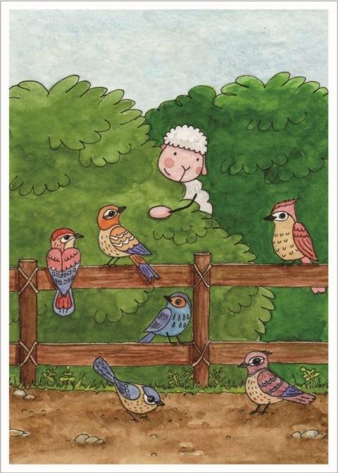 Pocztówka z kolorowanką - Spójrzcie na ptaki