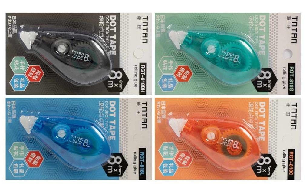 Dwustronna taśma samoprzylepna w podajniku, szerokość 8 mm, rolka 8 m. Miks wzorów wysyłany losowo.