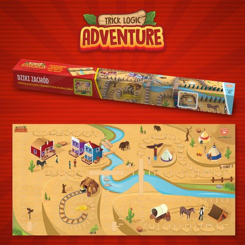 ADVENTURE podkład „DZIKI ZACHÓD” Podkłady pełne przygód i nowych wyzwań Przepraw się przez rzekę do obozu Indian. Pędź przez prerię za bizonami! Uzupełnienie asortymentu serii „ADVENTURE” - dodatkowe podkłady do układania płytek z nowymi przygodami i wyzwaniami. Duża liczba stale aktualizowanych motywów zapewni ciągłą zabawę zarówno dziewczynkom jak i chłopcom. Każdy z podkładów zaprojektowany jest tak aby wykorzystać pełna zawartość „Zestawu Startowego TLC 211". Kolejne podkłady można ze sobą łączyć tworząc własne, olbrzymie krainy. Przydatnym do większych zabaw jest zawartość kufra pełnego przygód „ADVENTURE BOX 422 Stawiaj płytki i akcesoria w miejscach oznaczonych na podkładzie. Jednym pchnięciem wpraw pierwsza płytkę w ruch i zobacz jak szybko ciąg pokonuje trasę. Dzięki serii ADVENTURE możesz zostać piratem i ścigać się z innymi w drodze do ukrytego na wyspie skarbu. Możesz być farmerem albo wędrowcem po krainie słodyczy. Jedynym ograniczeniem jest wyobraźnia! Podkłady do zabaw Trick Logic przeznaczone są dla dzieci od 4 roku życia. Odtwarzanie układów rozwija u dziecka wyobraźnię, umiejętność uspokojenia i koncentracji. Manipulowanie małymi elementami wpływa na zdolności motoryczne i koordynację wzrokowo - ruchową. Specjalnie zaprojektowane układy na podkładach wprowadzają w świat wyobraźni przemycając przy tym wiele wartości edukacyjnych. ZAWARTOŚĆ: podkład elastyczny (100% bawełna), rozmiar 600 x 1200 mm