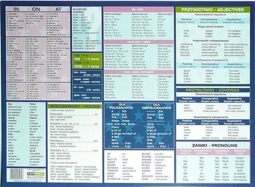 Słownik angielski - gramatyka w formie podkładu wykonany z solidnej, grubej, laminowanej tektury.