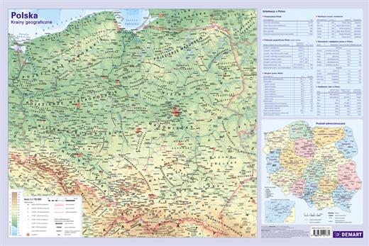 Na mapie Polski w skali 1 : 1 750 000 przedstawiono podział administracyjny Polski. Różnymi kolorami zostały wyróżnione obszary 16 województw, a w ich obrębie zaznaczono granice powiatów. Większym fontem podpisano siedziby władz wojewódzkich, przeważnie urzędujące w jednym mieście, tylko w przypadku dwóch województw: kujawsko-pomorskiego i lubuskiego w dwóch ośrodkach wojewoda i sejmik wojewódzki . Mniejsze opisy wskazują siedziby władz powiatowych lub nazwy powiatów niewywodzące się od nazw tych miast np. powiat łódzki wschodni. Obok mapy znajdują się herby wszystkich województw oraz ważne charakterystyki liczbowe 16 województw: powierzchnia, liczba ludności, liczba powiatów i miast. To znakomita pomoc w przyswajaniu struktury samorządowej naszego kraju!