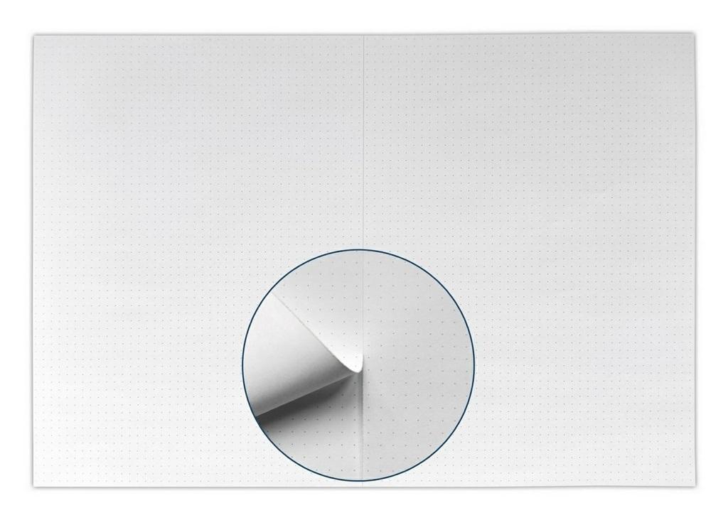 Klasyczna podkładka na biurko w formacie A3 firmy Narcissus. Biuwar posiada perforację na środku, pozwala to na oderwanie połowy kartki po jej zapisaniu. Takie rozwiązanie sprzyja ekonomicznemu wykorzystaniu całego obszaru do zapisków. Papier ma podwyższoną gramaturę 90 gsm. 30 kartek jest zadrukowanych w kropki o rozstawie 0,5 cm - sprzyja to kreatywnemu planowaniu. Z drugiej strony kartki czyste.Całość jest klejona po długiej krawędzi, plecki wzmocnione dodatkową, usztywniającą tekturą. Wyprodukowano w Polsce.