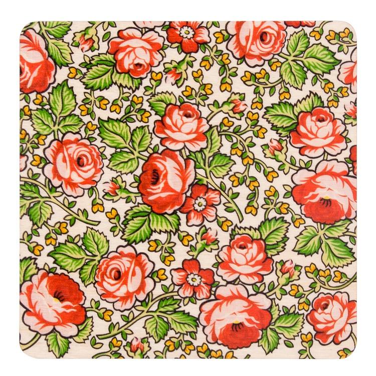 Folk podkładka pod kubek przedstawiająca tradycyjne ludowe wzory z tkaniny góralskiej - eko:w żywych kolorach wykonana z drewnianej sklejki,nadruk cyfrowy - zainspirowany góralskim strojem ludowym,kolorowy nadruk wykonany na naturalnym kolorze drewna,podkładka góralska zachwyca intensywną gamą kolorów,zdobienia na folk podkładce stylizowane na ludowo,stwórz swoje folk wnętrze,podkładki korkowe to doskonały upominek w stylu folk dla każdego,folkowe pamiątki z Polski