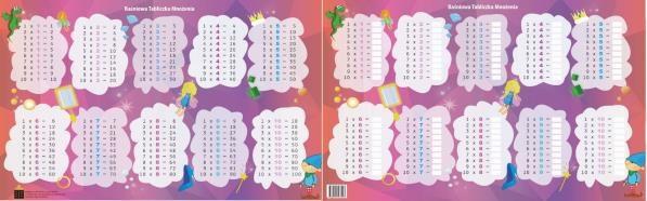 Laminowana dwustronna podkładka biurkowa z tabliczką mnożenia.