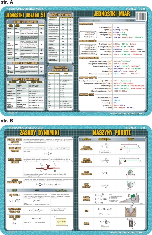 Laminowana i elastyczna podkładka na biurko, praktyczna pomoc w nauce, o wymiarach 40x30 cm, Jednostki układu SI, jednostki miar, maszyny proste, zasady dynamiki