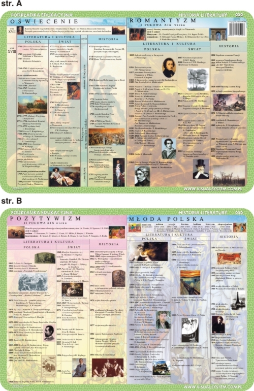 Laminowana i elastyczna podkładka na biurko, praktyczna pomoc w nauce, o wymiarach 40x30 cm, Oświecenie, romantyzm, pozytywizm, Młoda Polska