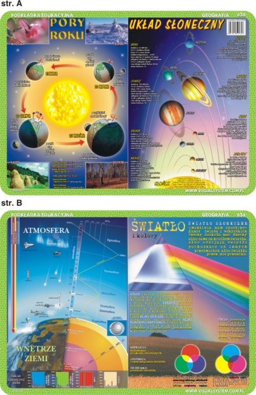 Podkładka edukacyjna. Układ słoneczny, pory roku, atmosfera,