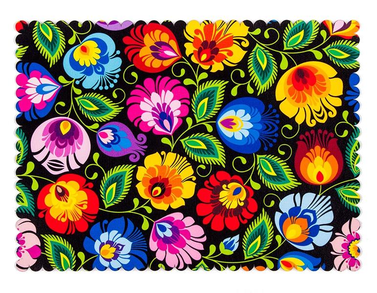 Czarna filcowa podkładka folk na stół 27x37 - na ludowo - kwiaty łowickie: